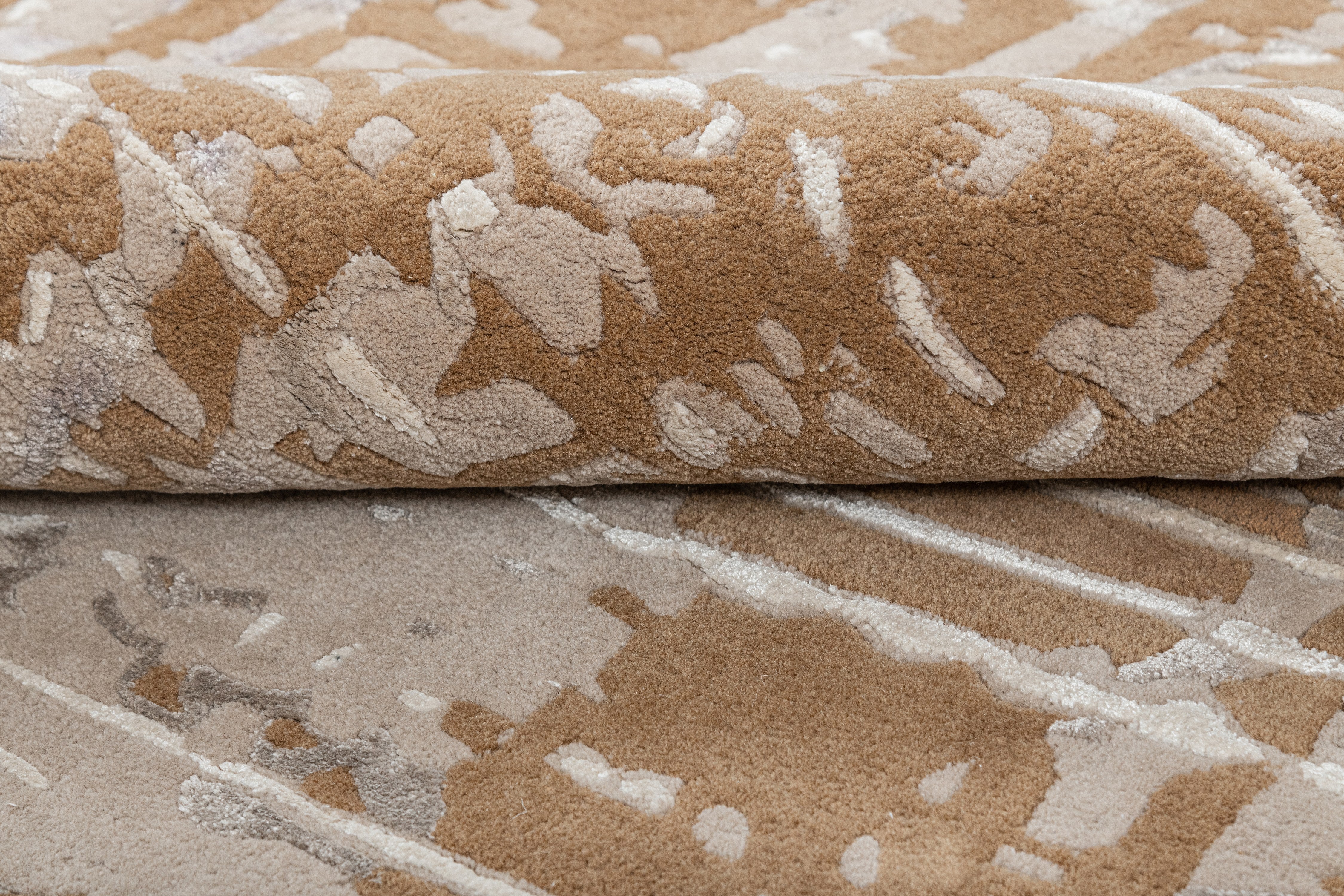 Pot-dyed wool and bamboo silk, sun-dried for rich, colorfast hues. Soft underfoot, breathable, naturally resilient, and easy to live with.