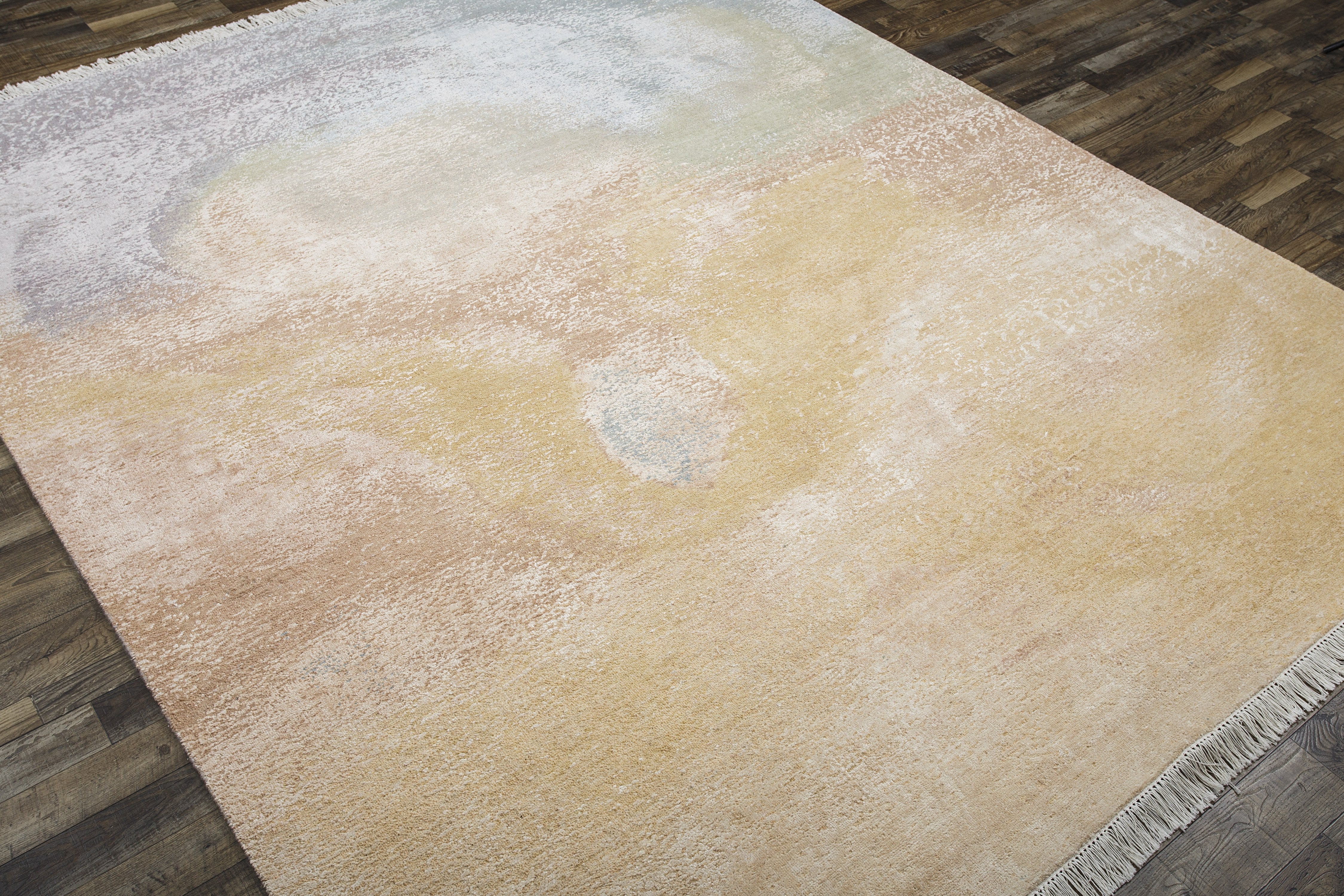 Pot-dyed wool and bamboo silk, sun-dried for rich, colorfast hues. Soft underfoot, breathable, naturally resilient, and easy to live with.