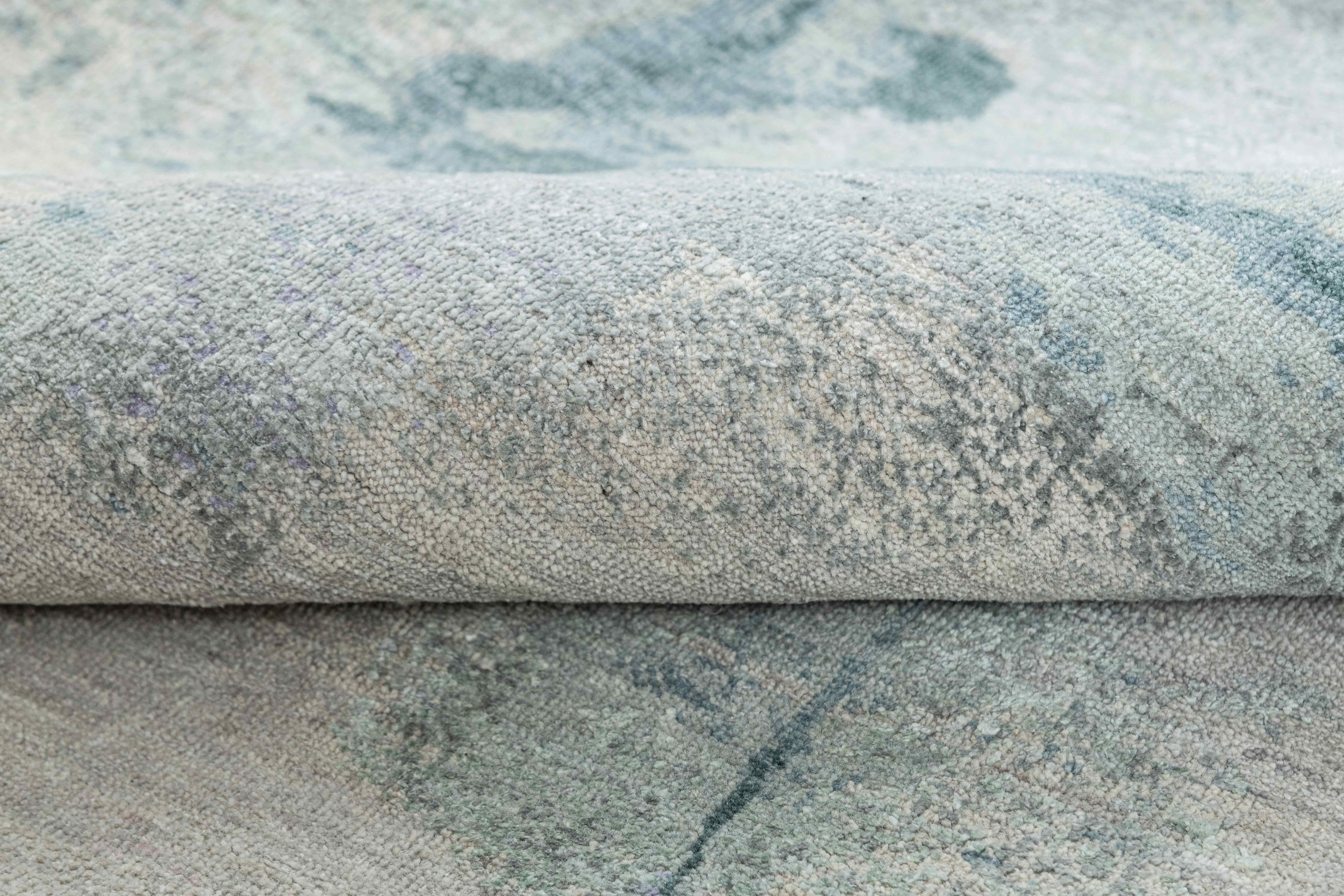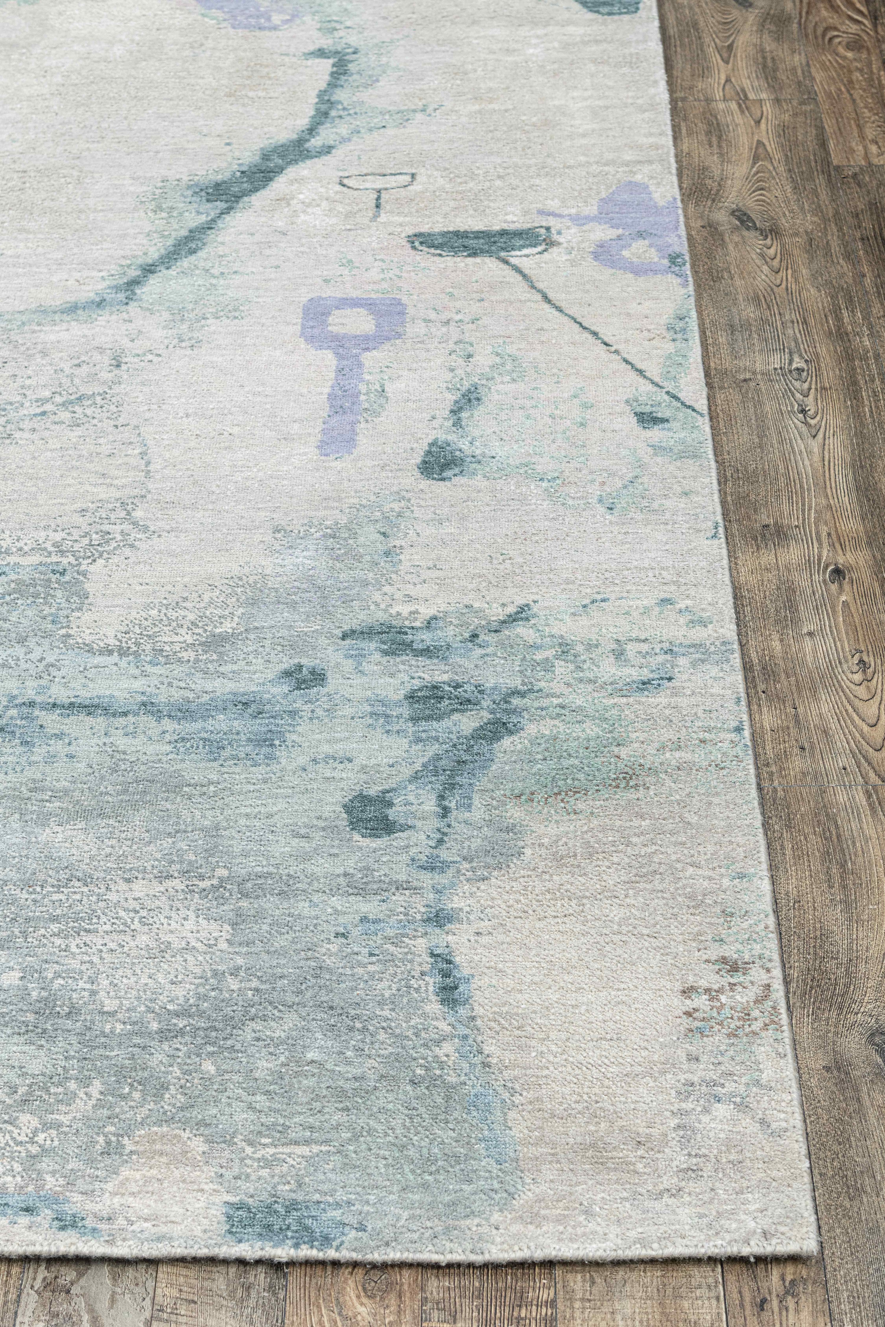 Pot-dyed wool and bamboo silk, sun-dried for rich, colorfast hues. Soft underfoot, breathable, naturally resilient, and easy to live with.