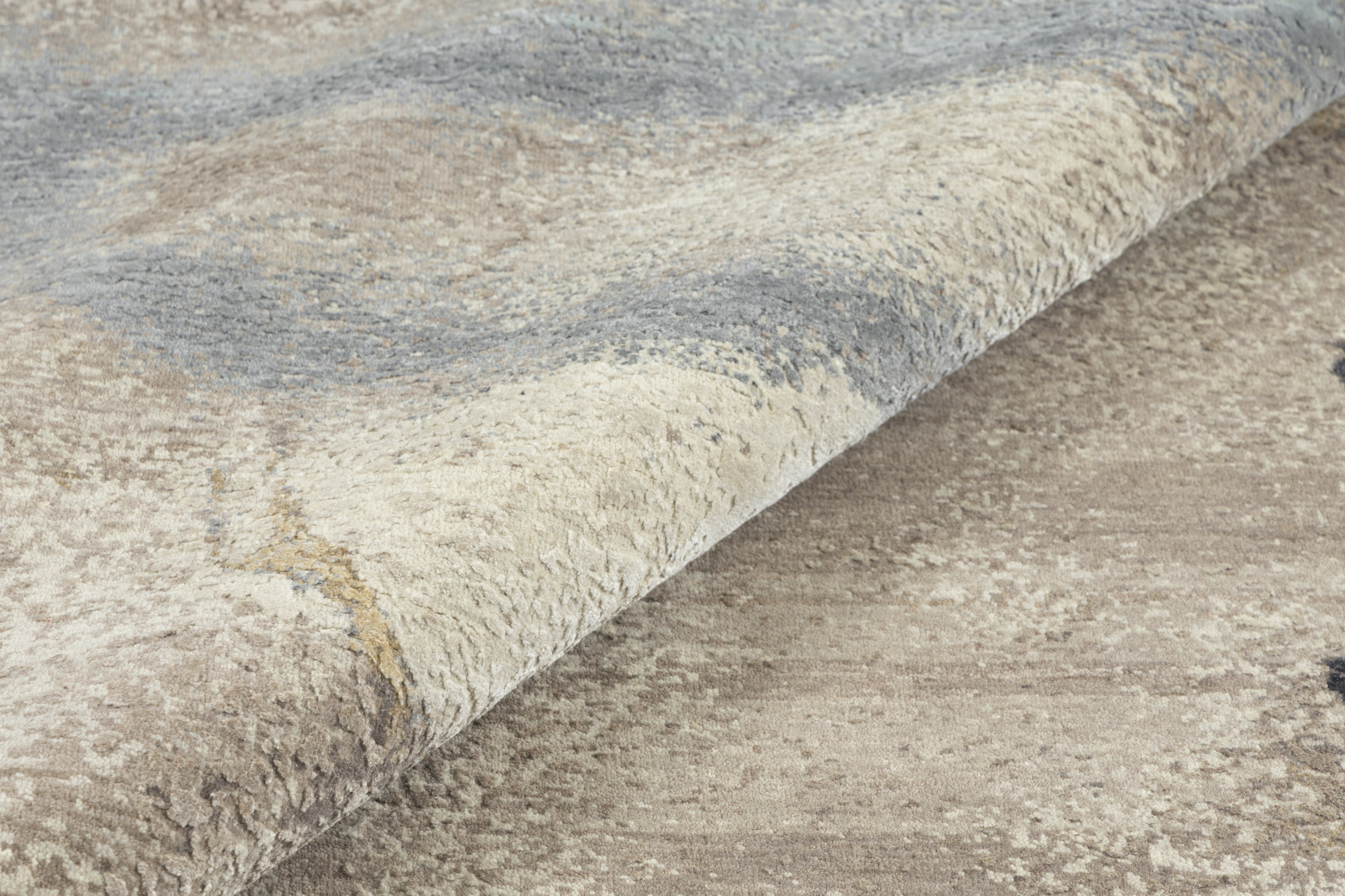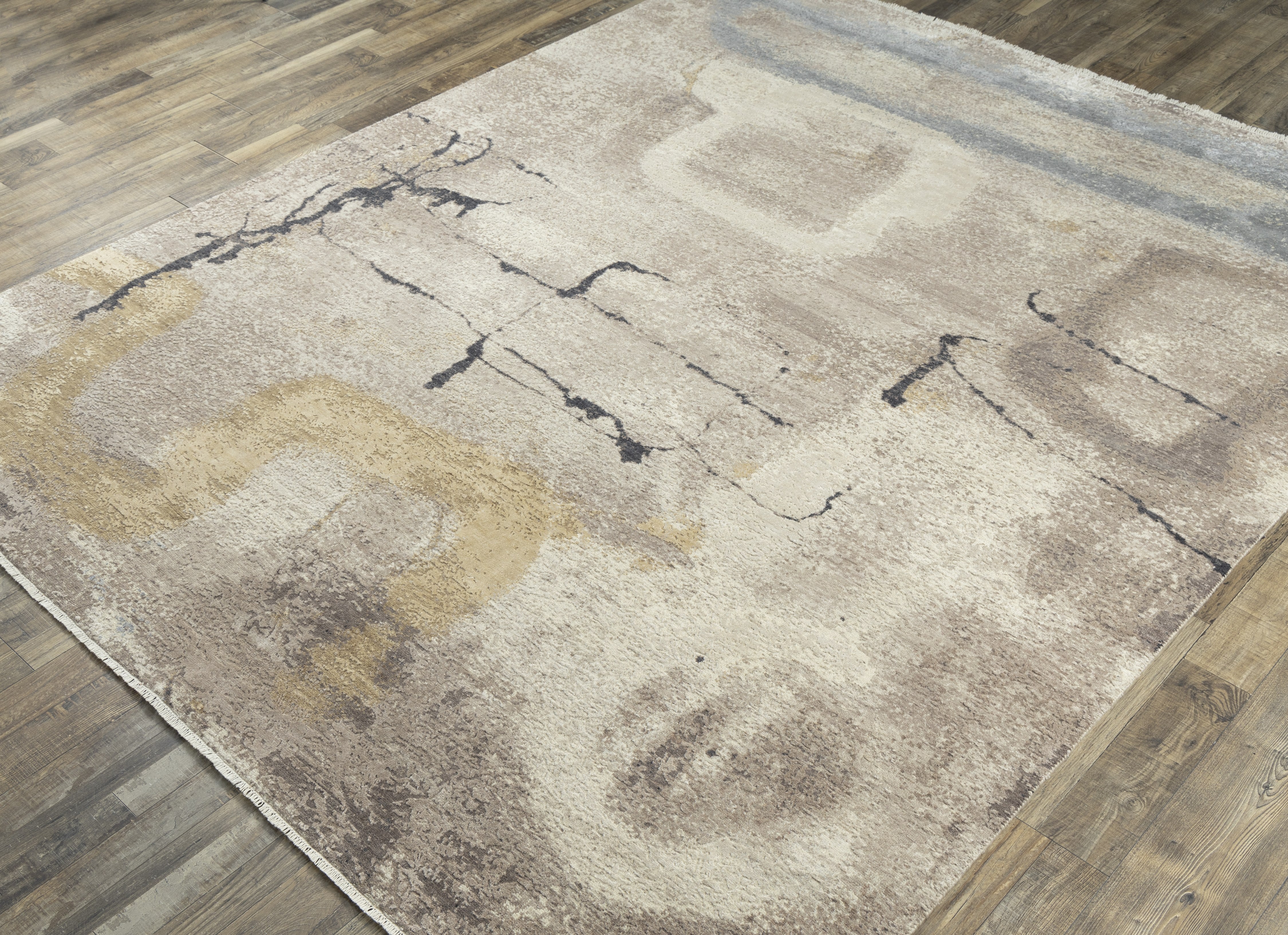 Pot-dyed wool and bamboo silk, sun-dried for rich, colorfast hues. Soft underfoot, breathable, naturally resilient, and easy to live with.