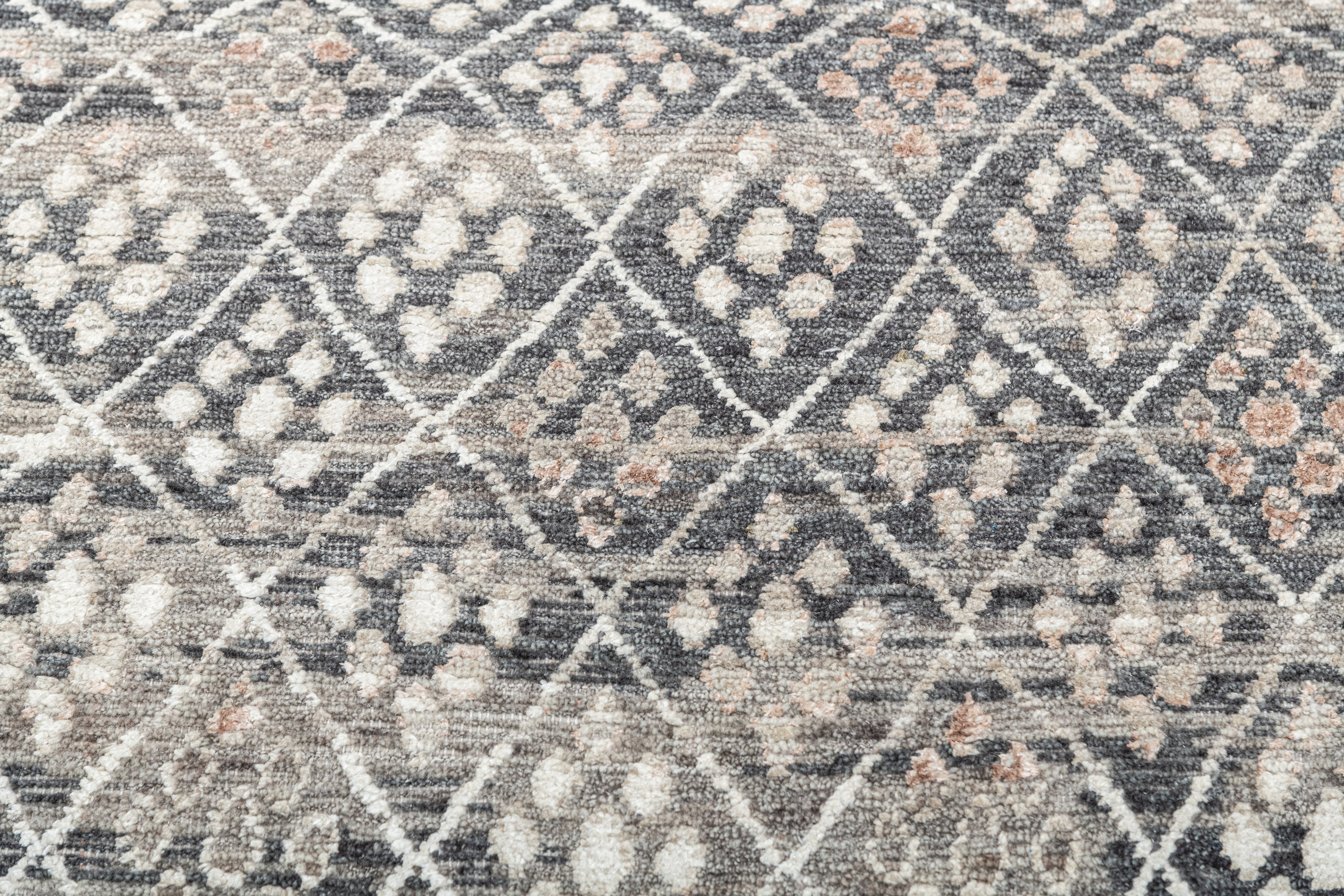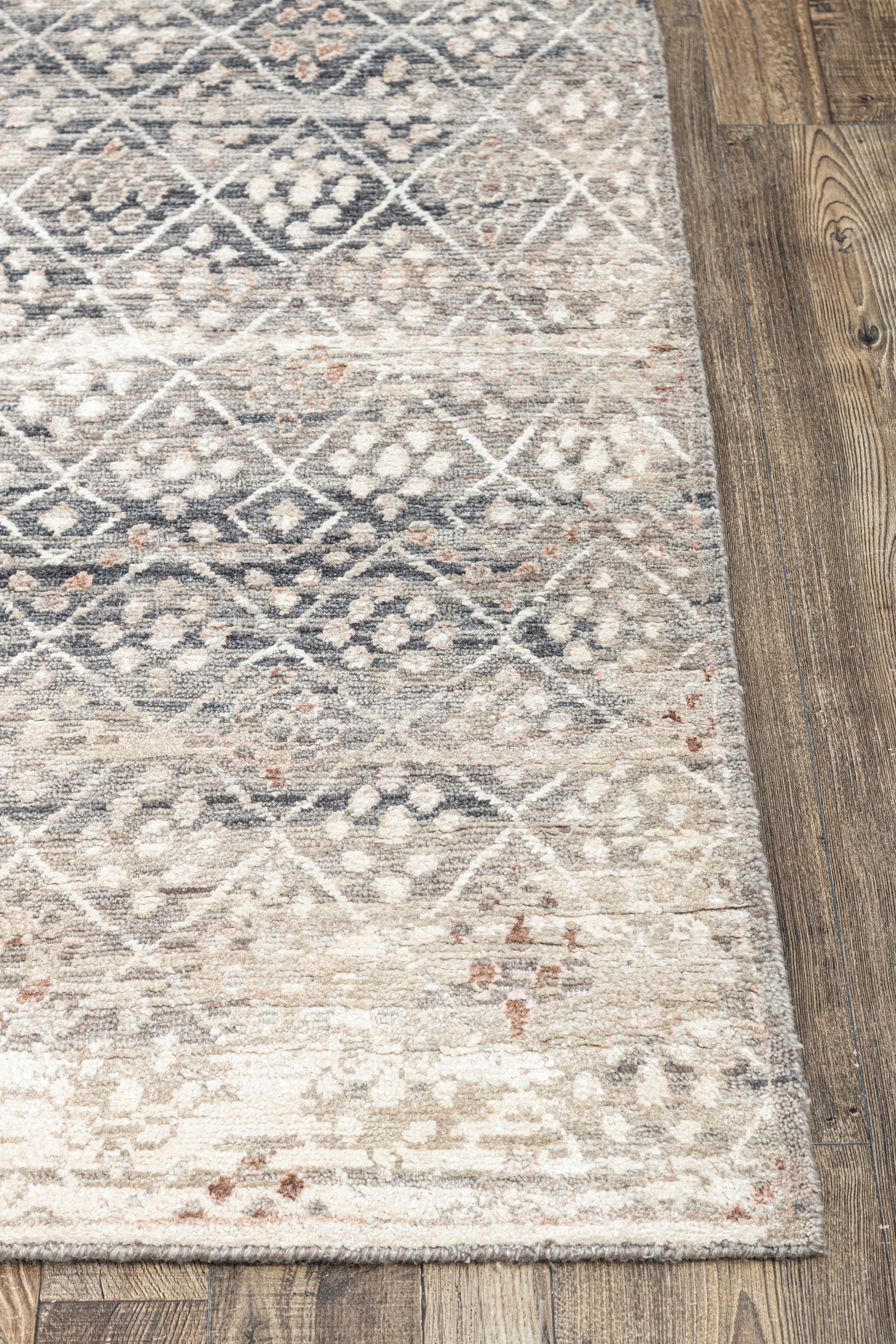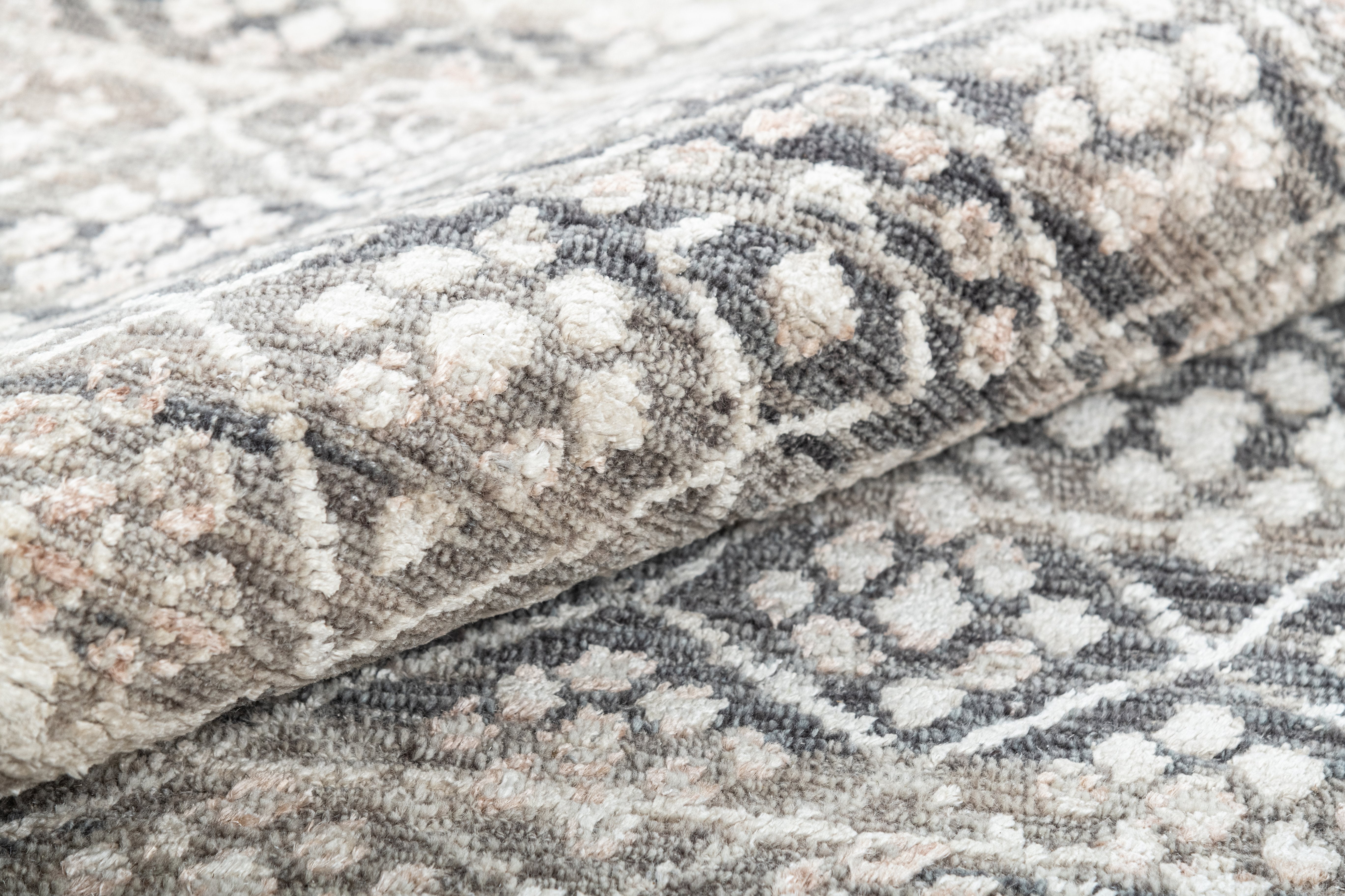 Pot-dyed wool and bamboo silk, sun-dried for rich, colorfast hues. Soft underfoot, breathable, naturally resilient, and easy to live with.