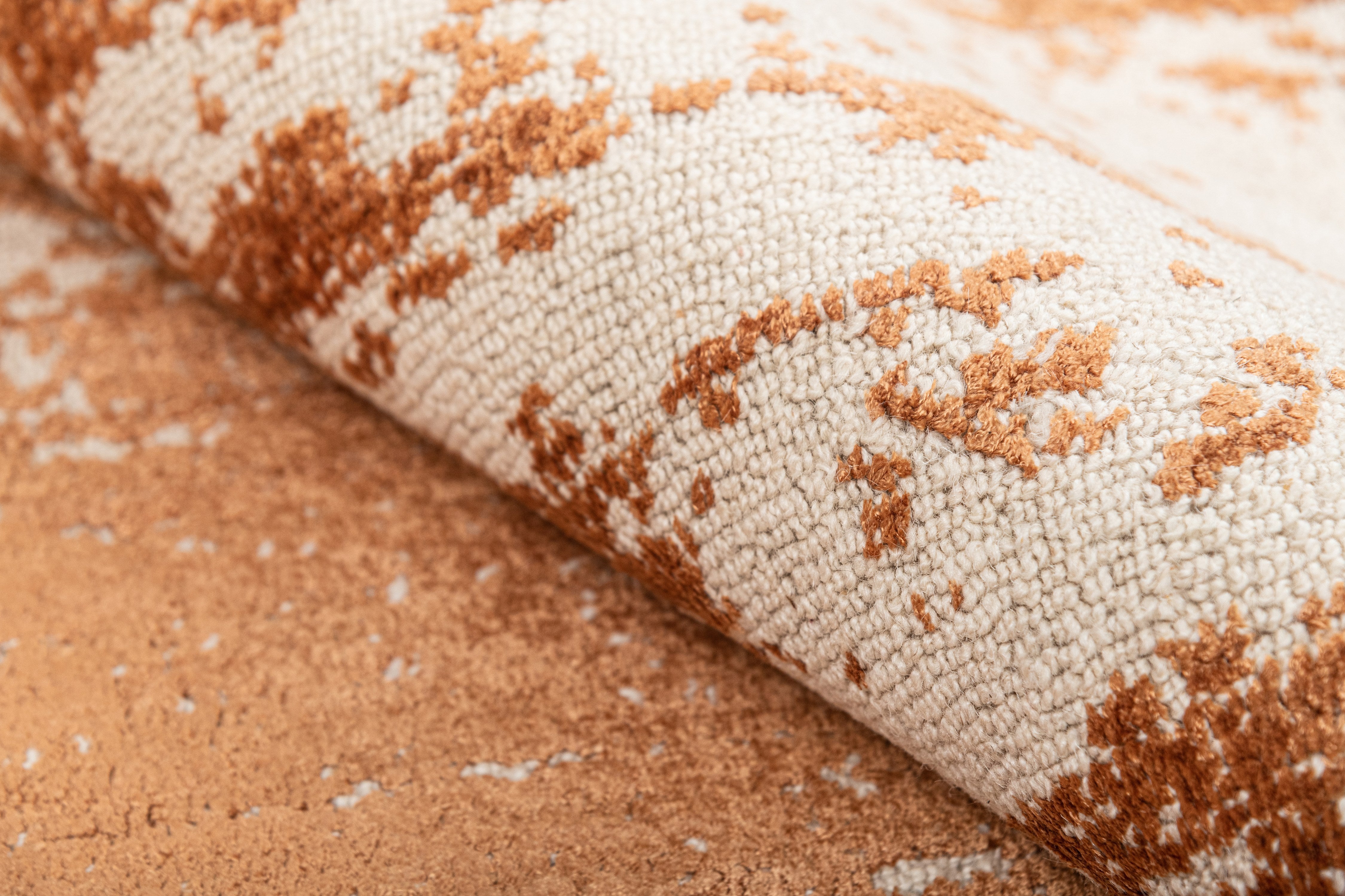 Pot-dyed wool and bamboo silk, sun-dried for rich, colorfast hues. Soft underfoot, breathable, naturally resilient, and easy to live with.