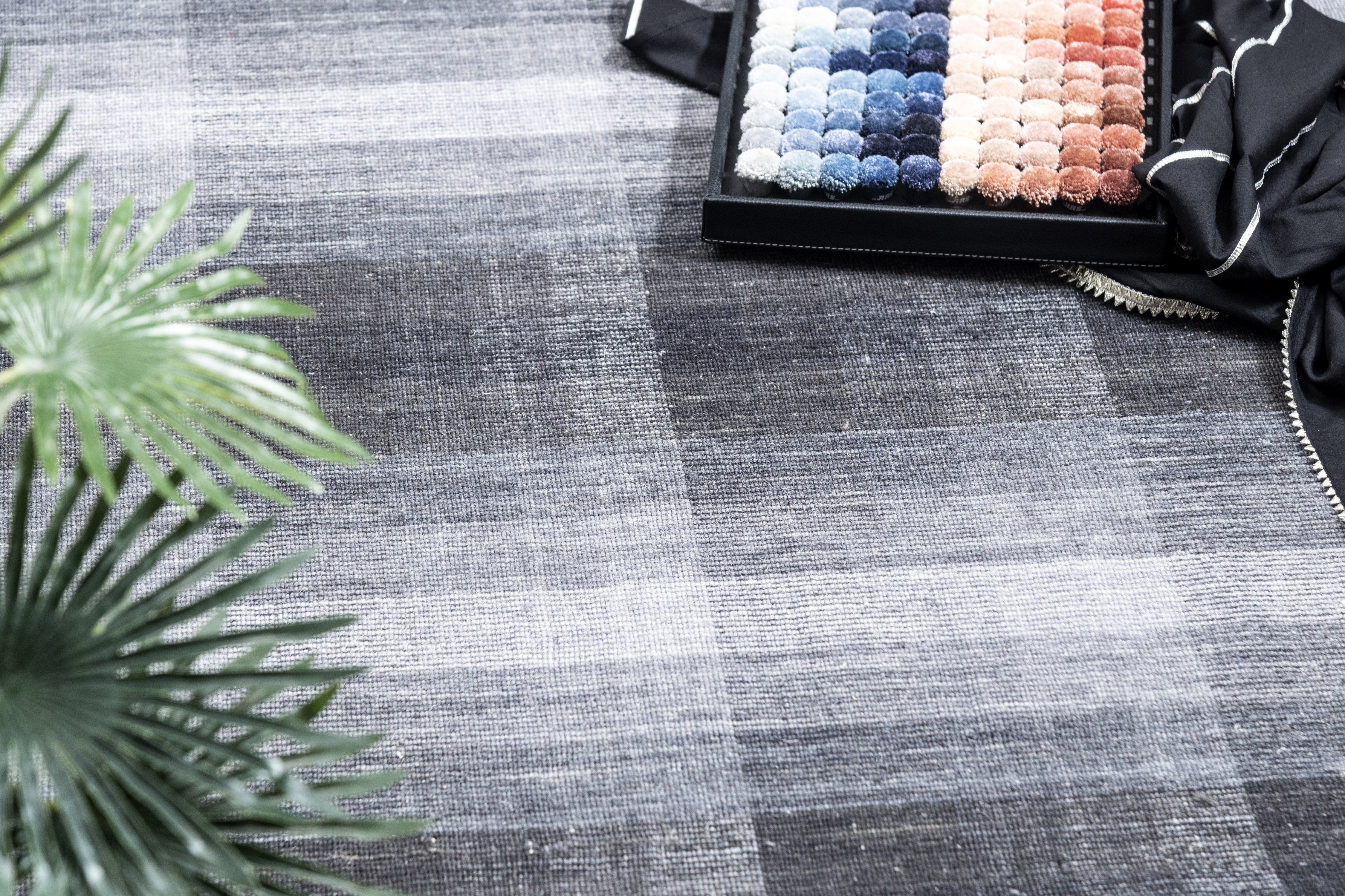 Pot-dyed wool and bamboo silk, sun-dried for rich, colorfast hues. Soft underfoot, breathable, naturally resilient, and easy to live with.