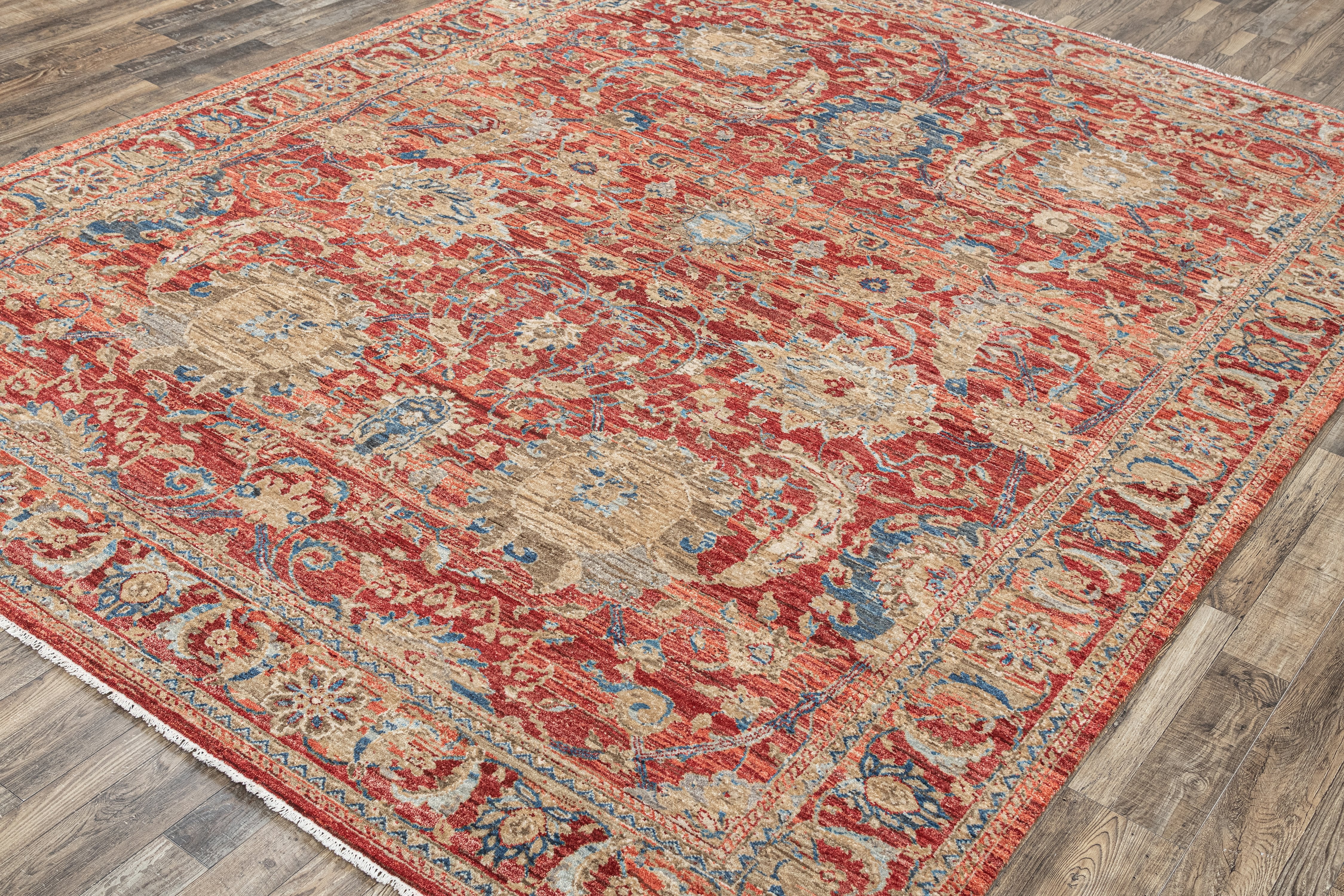 Pot-dyed wool and bamboo silk, sun-dried for rich, colorfast hues. Soft underfoot, breathable, naturally resilient, and easy to live with.