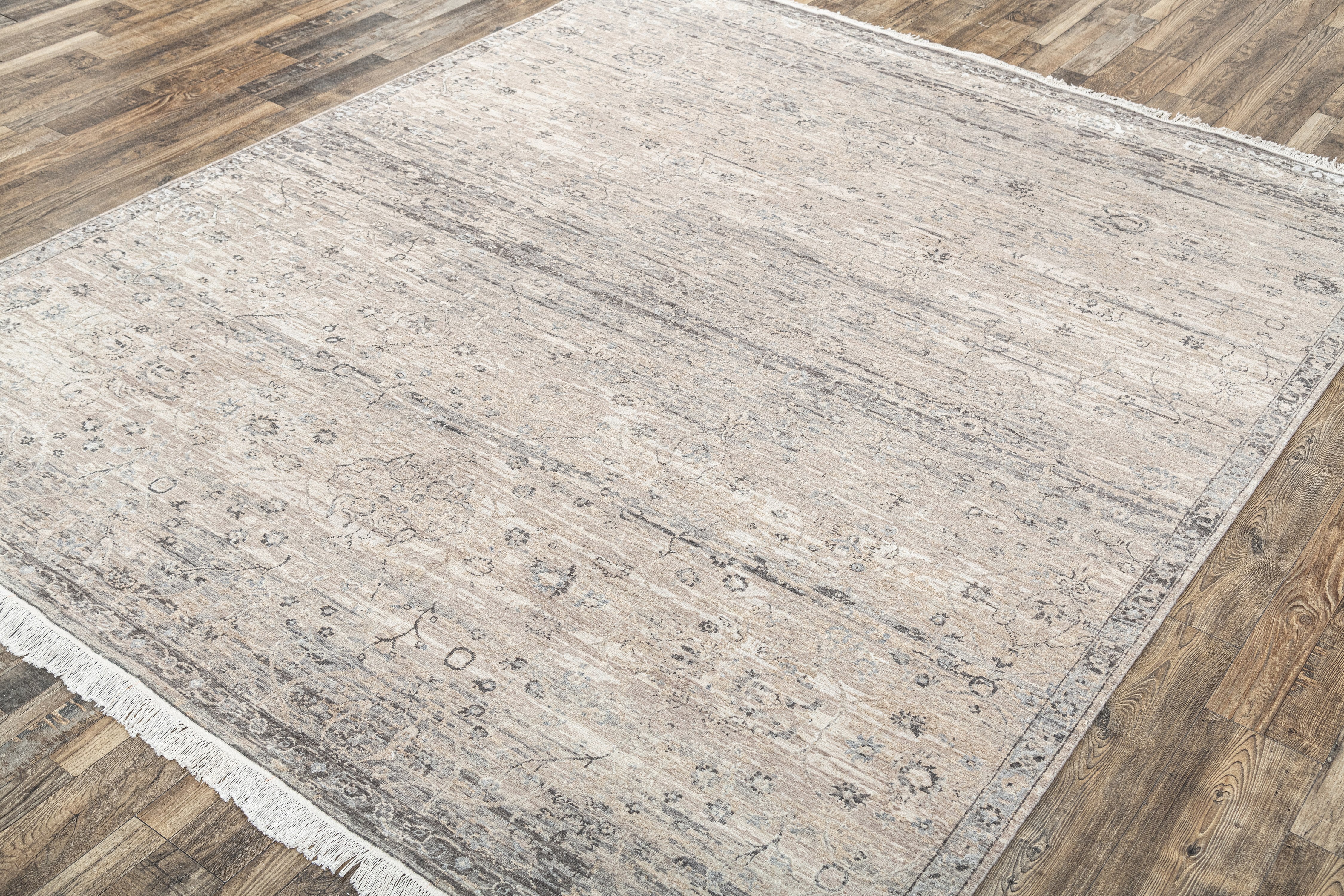 Pot-dyed wool and bamboo silk, sun-dried for rich, colorfast hues. Soft underfoot, breathable, naturally resilient, and easy to live with.