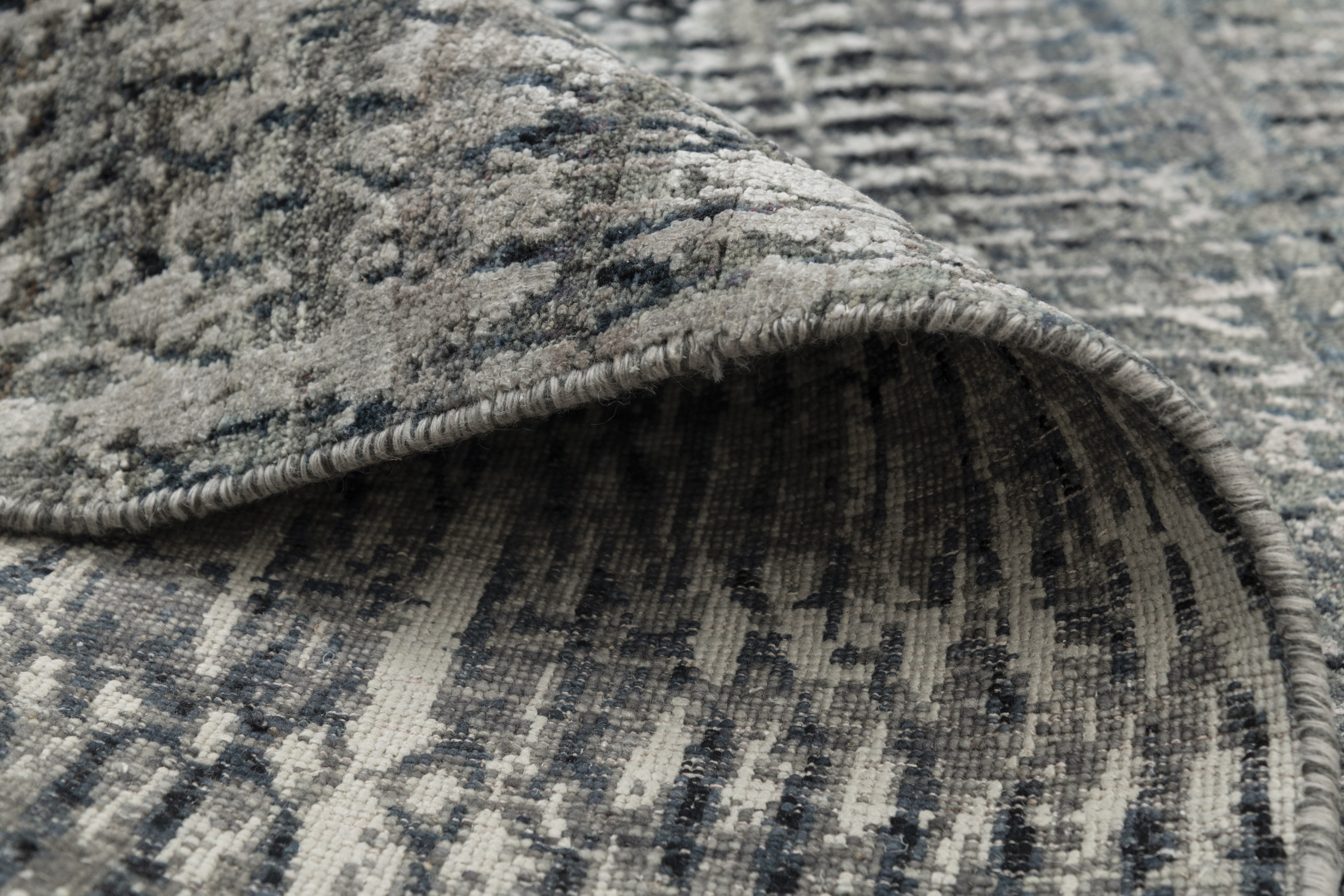 Pot-dyed wool and bamboo silk, sun-dried for rich, colorfast hues. Soft underfoot, breathable, naturally resilient, and easy to live with.