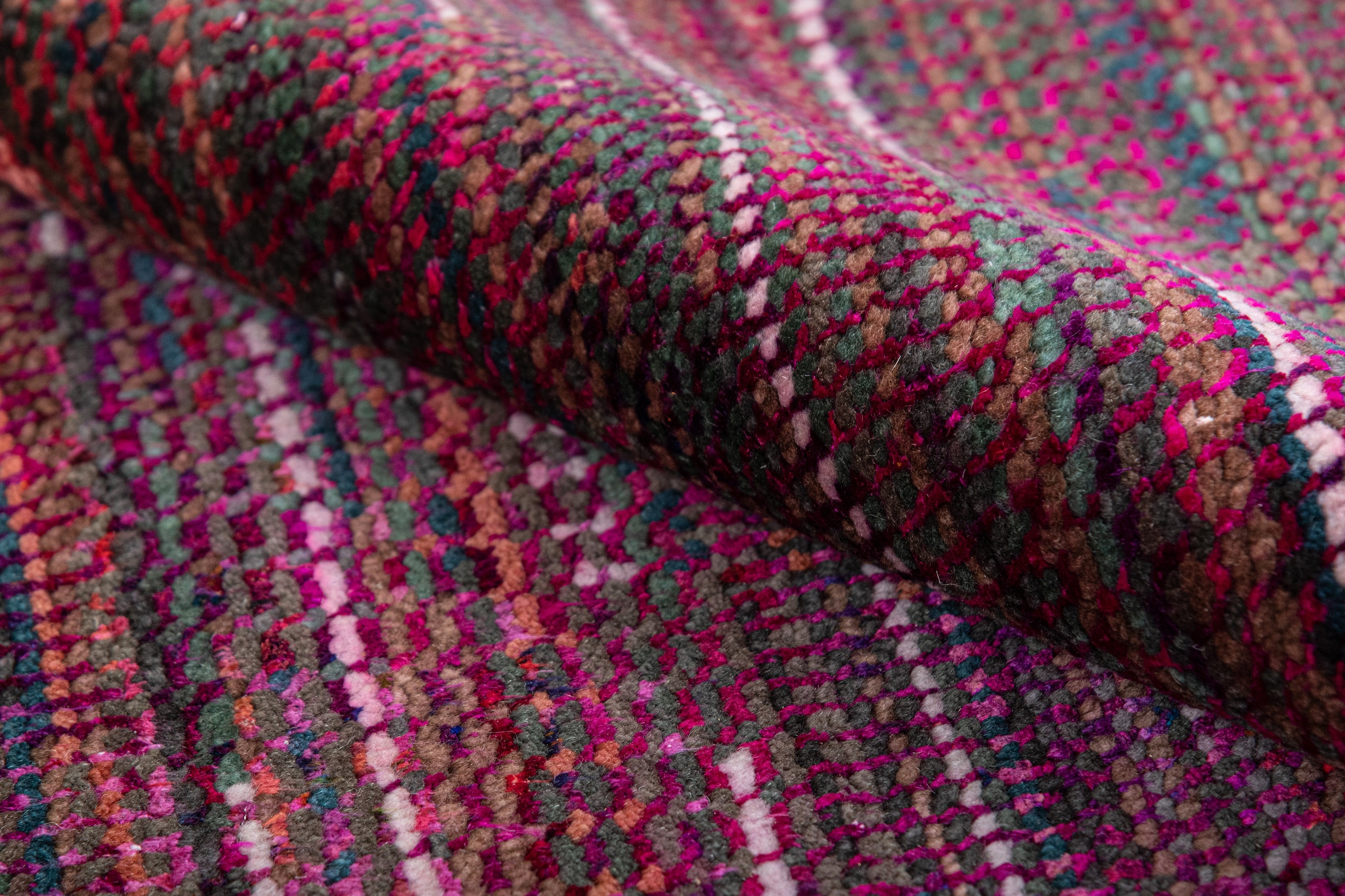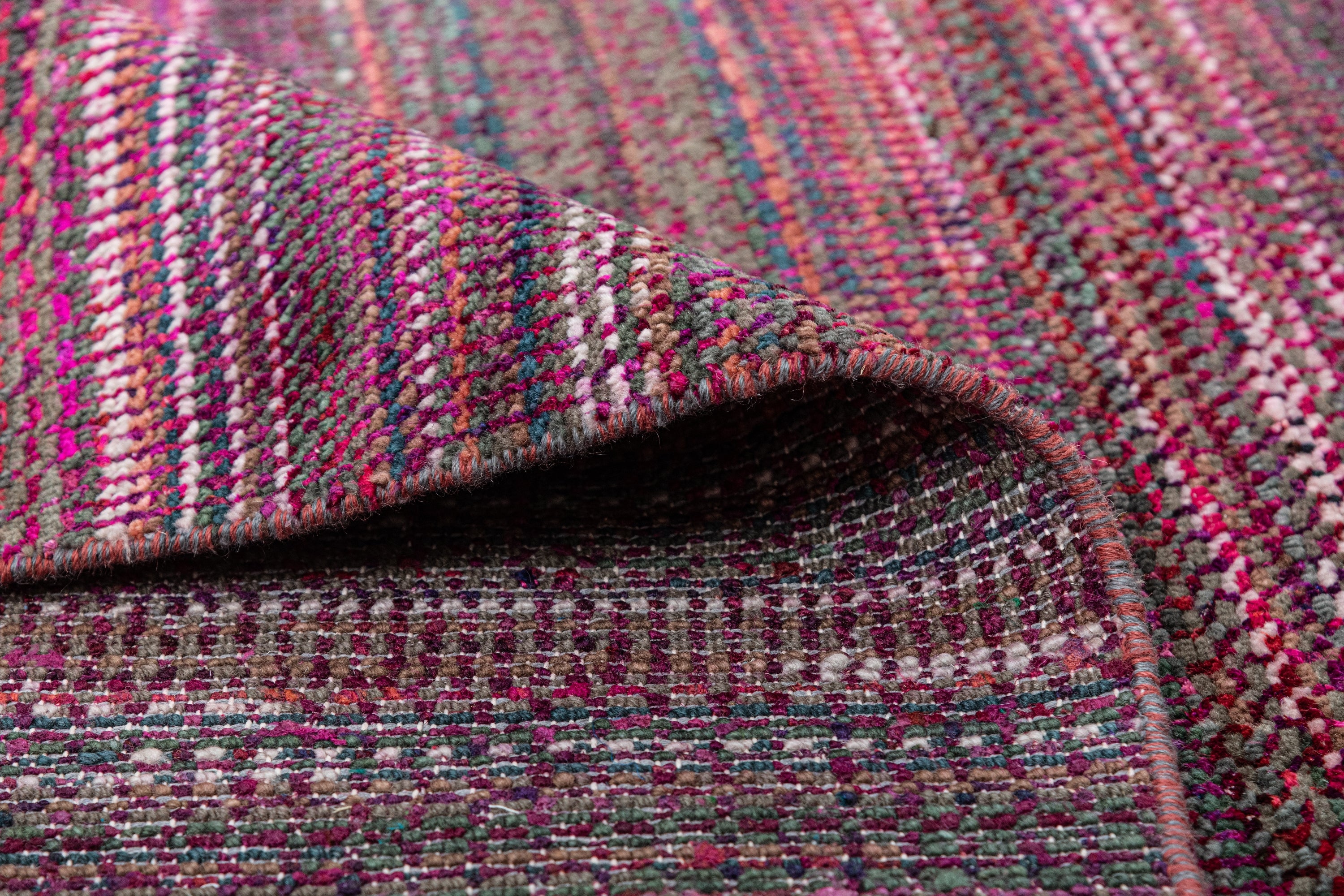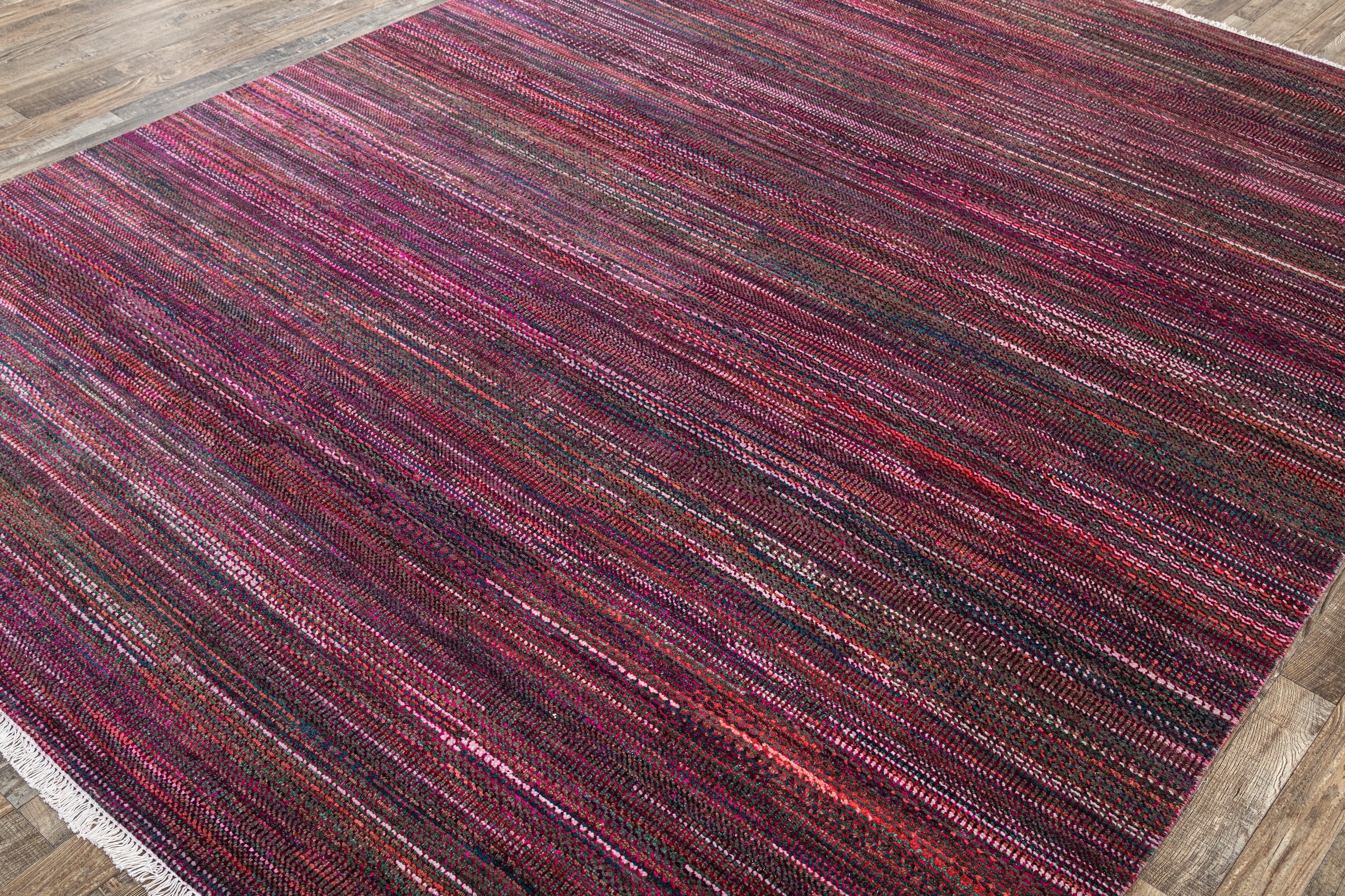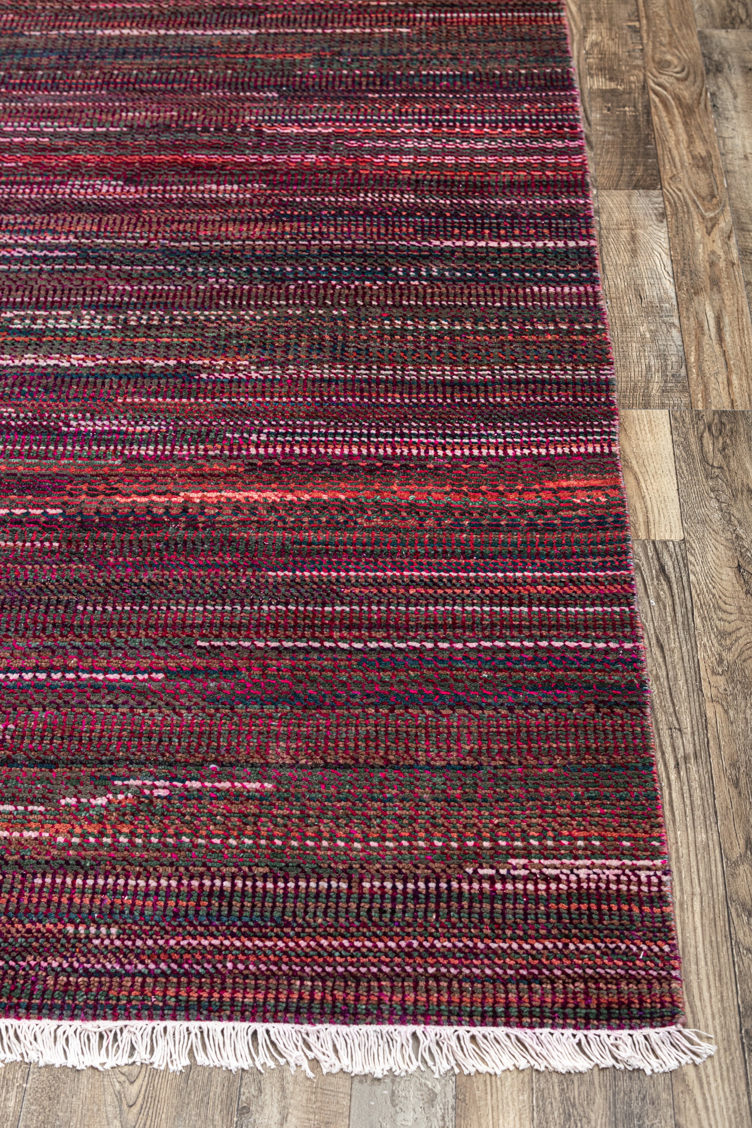Pot-dyed wool and bamboo silk, sun-dried for rich, colorfast hues. Soft underfoot, breathable, naturally resilient, and easy to live with.